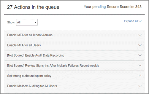 Caveat. You may see actions that are labeled “Not Scored”. Unfortunately these are not scored in the tool yet, but completing them will still benefit the security of your environment.